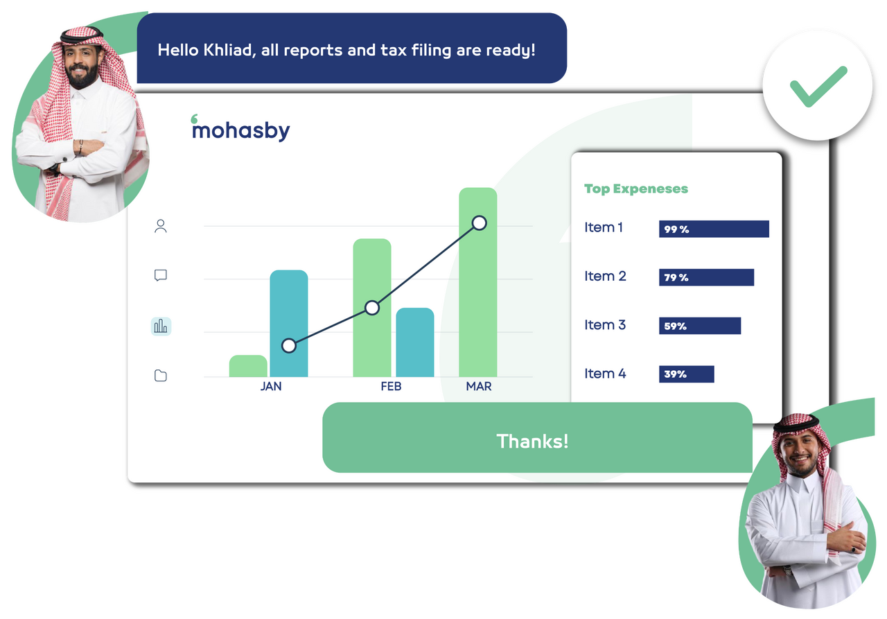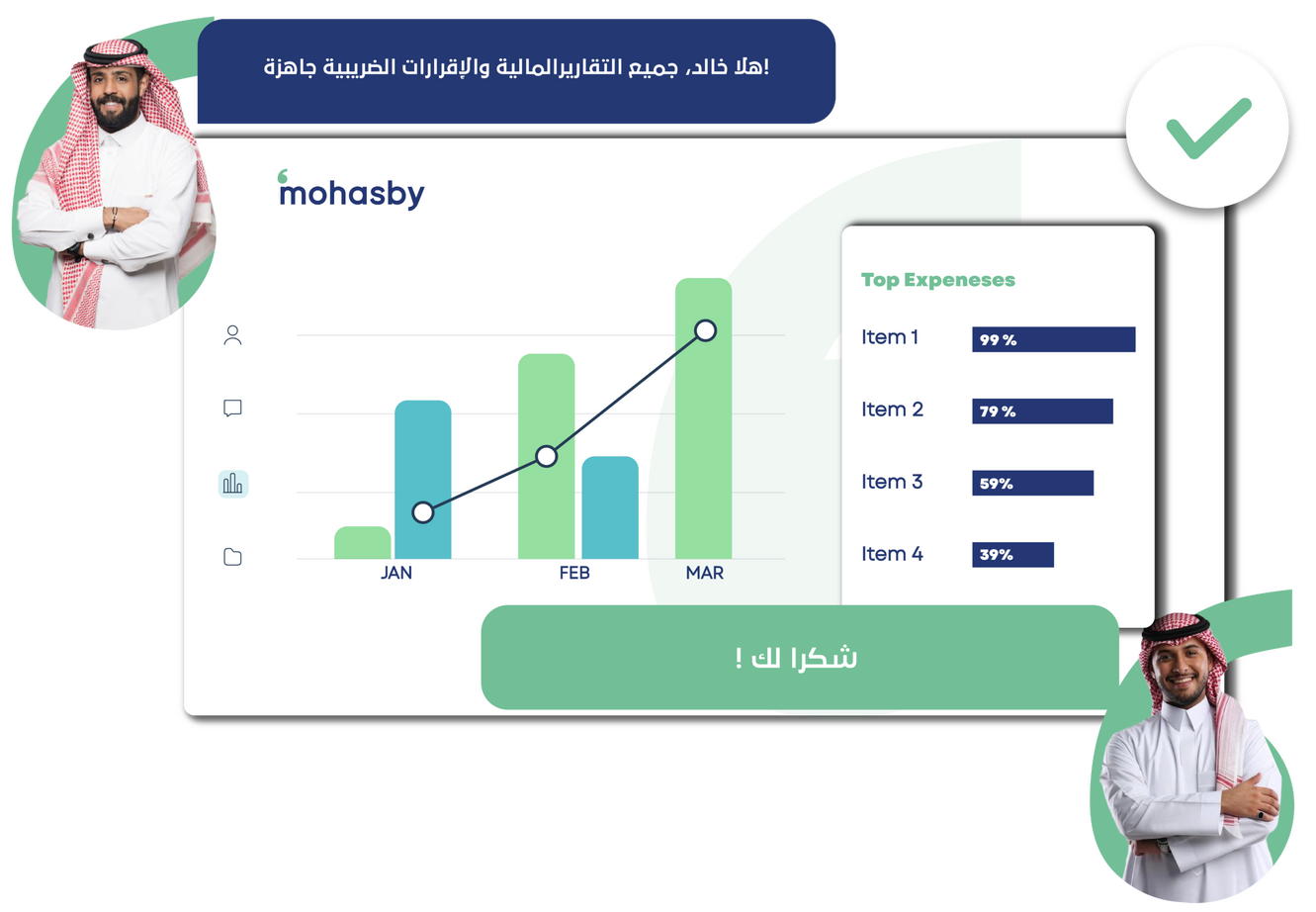 Mohasby complies with the E-Invoice regulations of the Zakat, Tax and Customs Authority, follows the guidelines of the Saudi Organization for Certified Public Accountants and is committed to the best accounting practices.